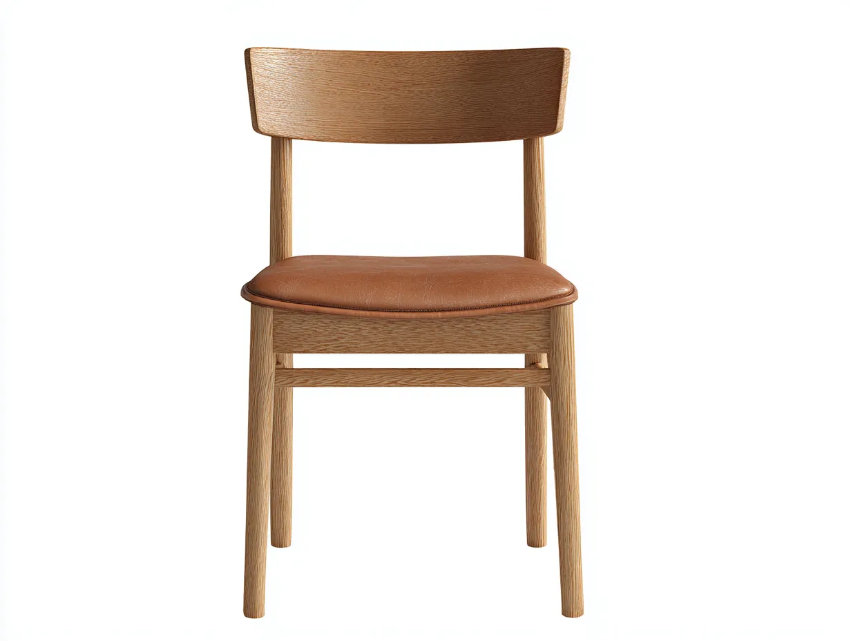 Gefertigt aus Kunstleder und Holz in Braun, kombiniert der Stuhl eine pflegeleichte Sitzfläche mit einer stabilen Holzkonstruktion. Die natürliche Holzstruktur verleiht dem Möbelstück eine warme Ausstrahlung, während die Verarbeitung auf Langlebigkeit ausgelegt ist.
