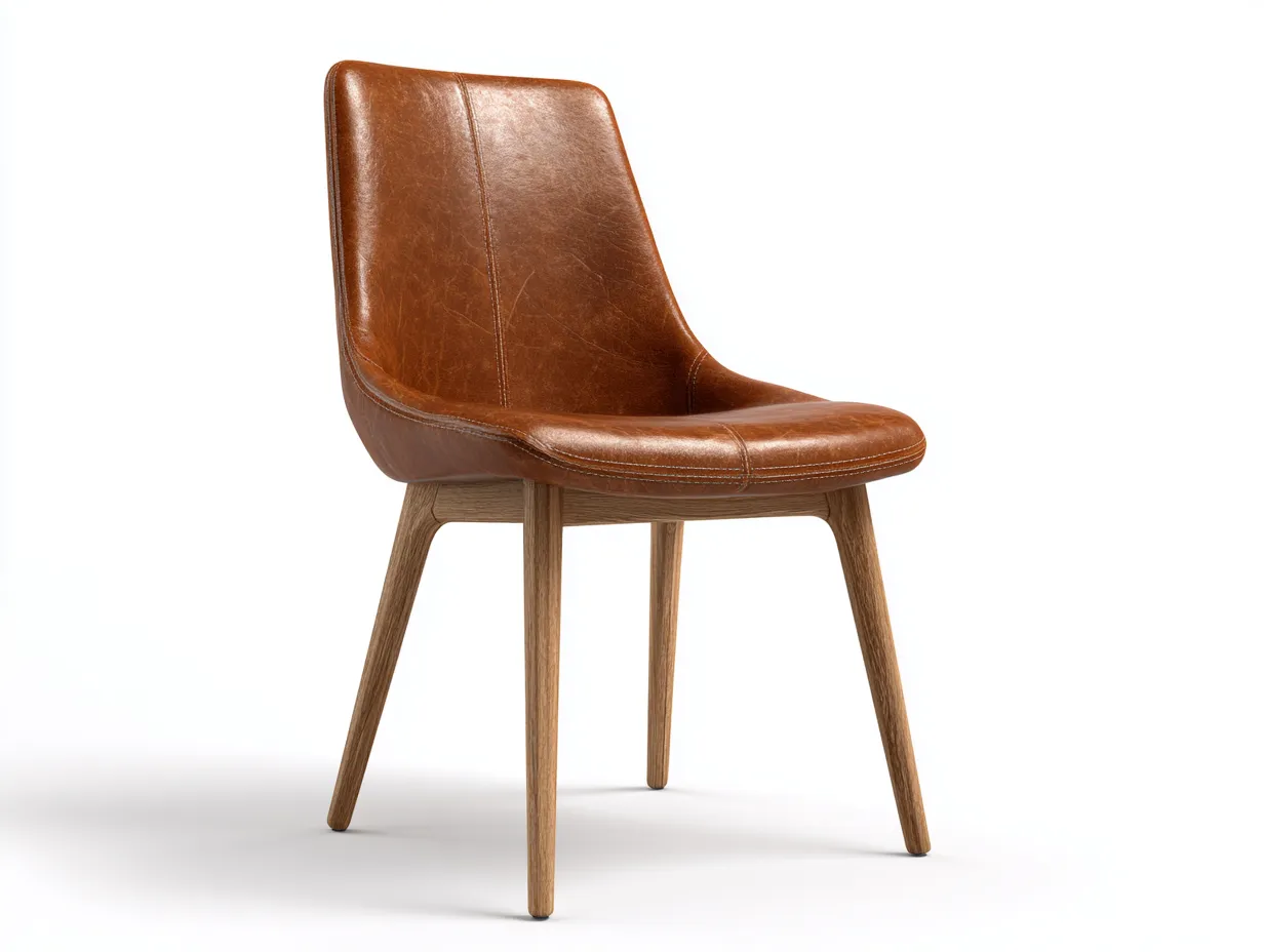 Gefertigt aus Kunstleder und Holz in Braun, überzeugt der Stuhl durch eine strapazierfähige Oberfläche mit charaktervoller Struktur. Die stabilen Holzbeine sorgen für eine zuverlässige Standfestigkeit und unterstreichen die natürliche Optik des Designs.