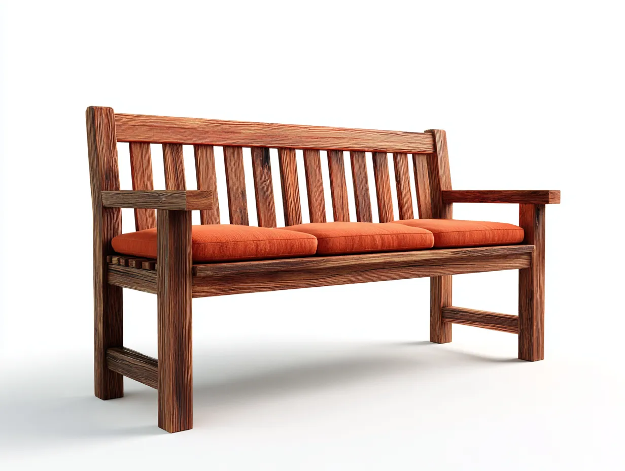 Gefertigt aus Holz und ergänzt durch eine textile Sitzauflage zeichnet sich die Bank durch eine robuste Bauweise aus. Die Oberfläche zeigt eine warme Holzoptik, während die Sitzfläche in einem kräftigen Orangeton gehalten ist. Die stabile Verarbeitung unterstützt eine zuverlässige Nutzung im Alltag.