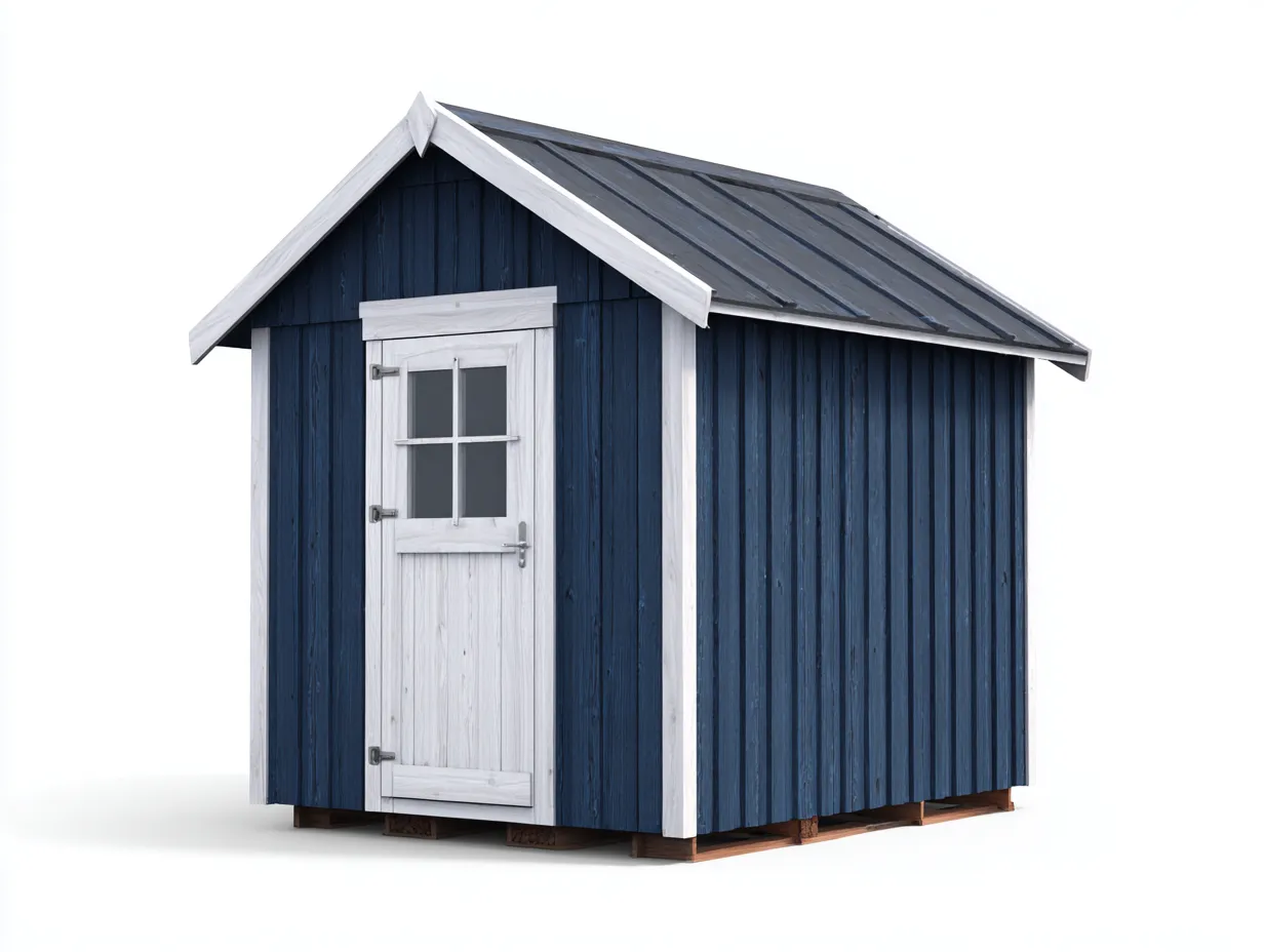Gefertigt aus Holz und Metall in Blau und Weiß. Die Holzstruktur verleiht dem Gartenhaus eine natürliche Ausstrahlung, während die metallische Dachfläche zusätzliche Stabilität und Witterungsbeständigkeit unterstützt.